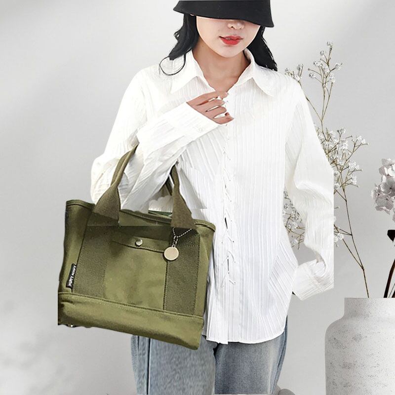 ◯ 旅行のお供に:コンパクトながら荷物をスッキリ整理できる帆布トート バッグです。