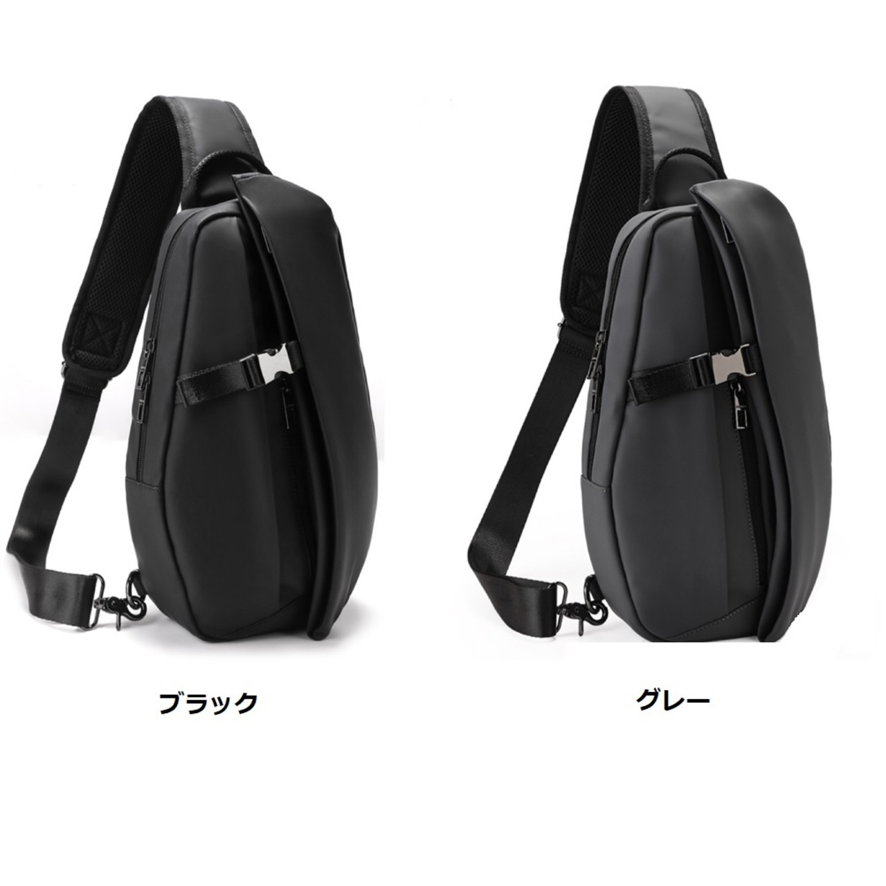 ボディバッグ 3つフロントファスナー式ポケットが付き。