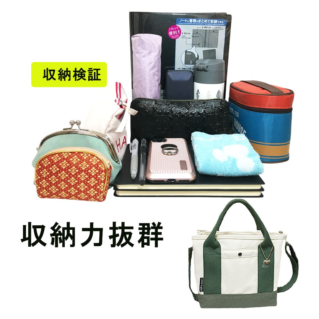 小さめながらも、実用的な大容量を実現!メインコンパートメントには、仕切りがあり、スマートフォンやお財布、メイク道具などの小物をすっきり収納できます。お弁当や水筒も入るので、ランチバッグとしてもお勧めです。