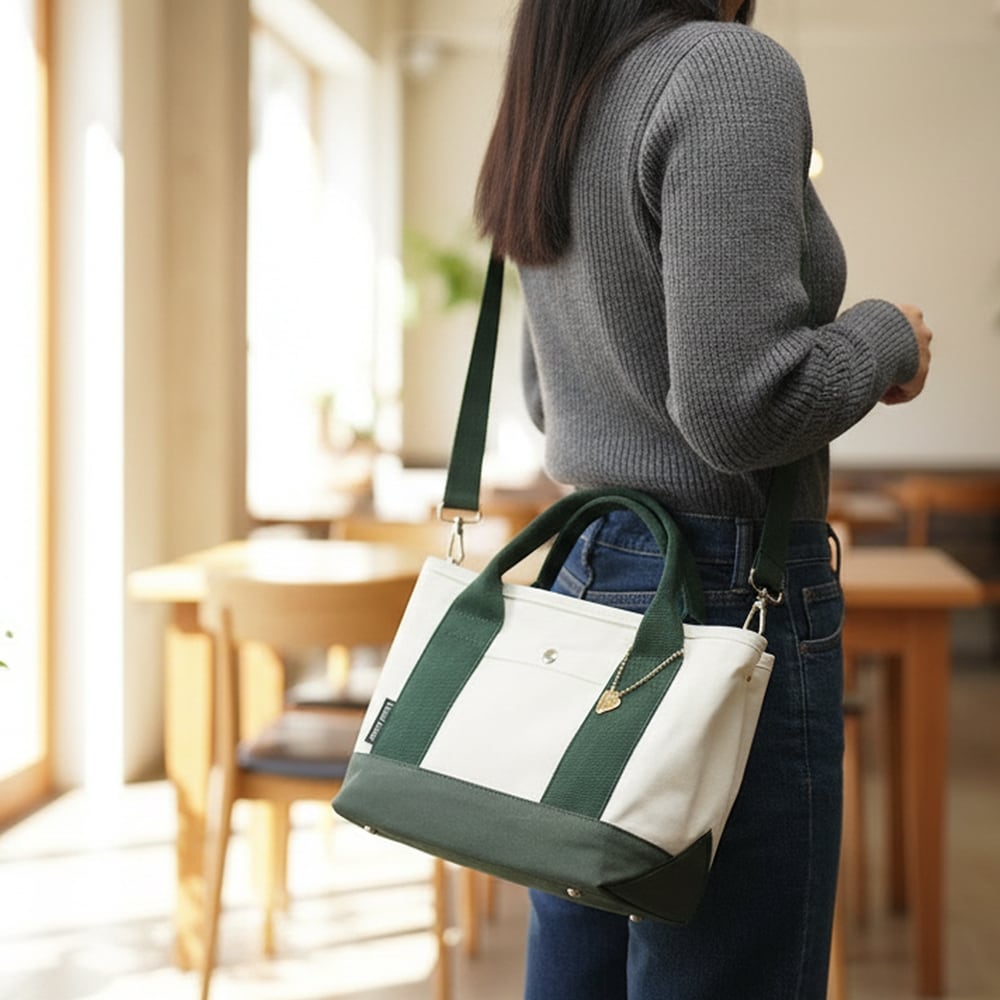オリジナル2WAYトートバッグ ショルダーバッグ キャンバスバッグ 3つ仕切り 底鋲付き ミニトートバッグ マザーズバッグ ランチバッグ 安定性 汚れ防止 自立